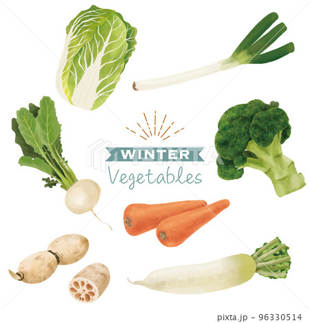いろいろな冬野菜のセット 水彩