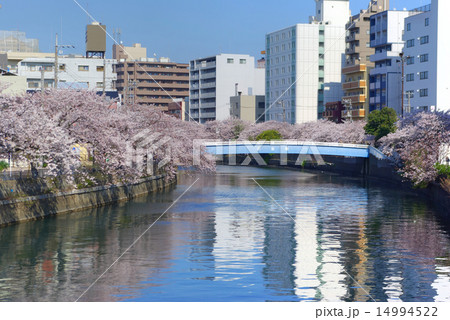 横浜 大岡川 道慶橋から白金橋方向の桜