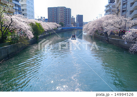 横浜 大岡川 栄橋から白金橋方面の桜並木