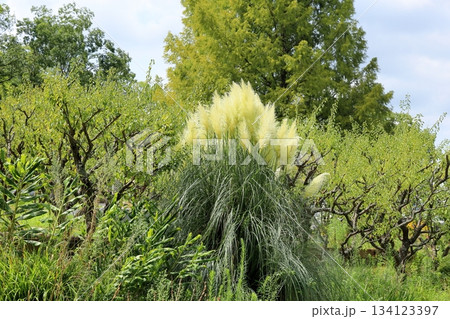庭園に植えられたパンパグラス