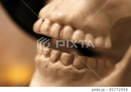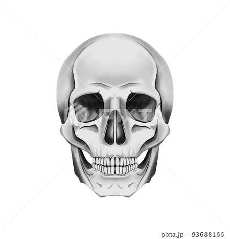 線画なし厚塗りのリアルな頭蓋骨の正面顔 ラスター素材