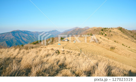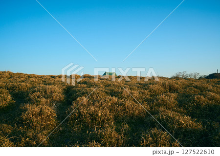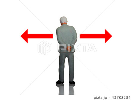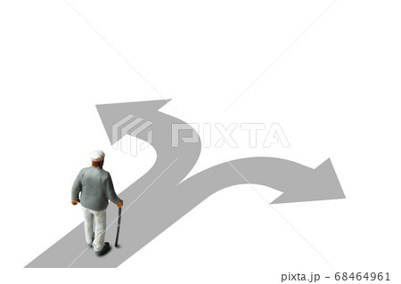(上半身斜め後ろ)分岐点の道の前で迷い始める高齢の男性
