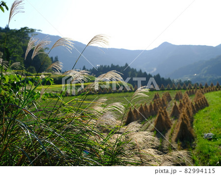 吉延の棚田とススキとワラ倉