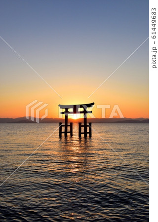 湖上の鳥居 滋賀県琵琶湖 白髭神社の日の出