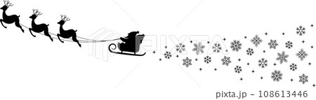 サンタクロースをひくトナカイと雪の結晶のシルエット