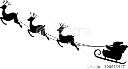 トナカイが引くソリに乗りプレゼントを配るサンタクロースのシルエット