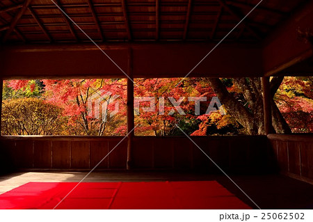 日本 京都府京都市の二ノ瀬にある白龍園のハート窓から見える紅葉