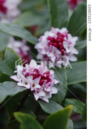 ピンクの蕾から白い花が咲いたジンチョウゲ