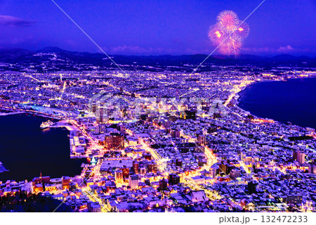 厳冬期の函館山から見た函館市街の夜景
