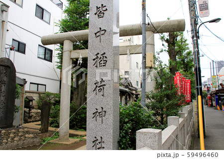皆中稲荷神社 鳥居 & 拝殿 2016年6月 ( 皆中神社 ) 東京都 新宿区 百人町