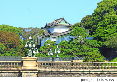 東京都千代田区皇居外苑、正門石橋と伏見櫓の風景