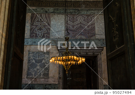 トルコ イスタンブールの旧市街に建つアヤソフィア内部