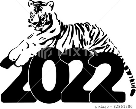 Tiger lies on the numbers 2022. Happy New Year. Creative card design.