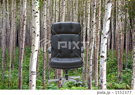 白樺の林にオフィスチェアがある