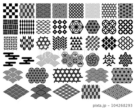 カラフルな和柄の正方形と長方形のパターン背景