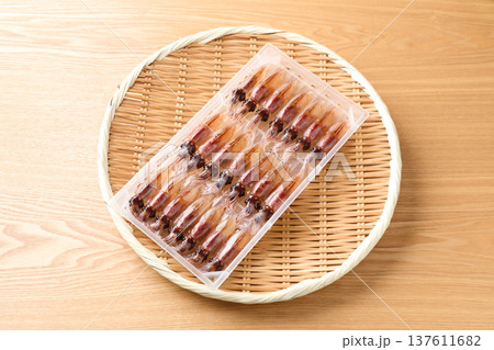 生ケースに並べた生ホタルイカ