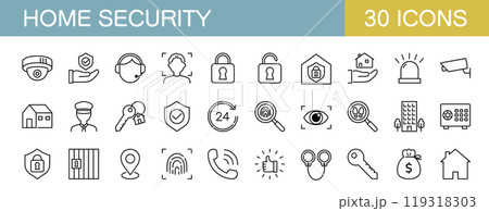 ホームセキュリティに関するラインアイコンセット