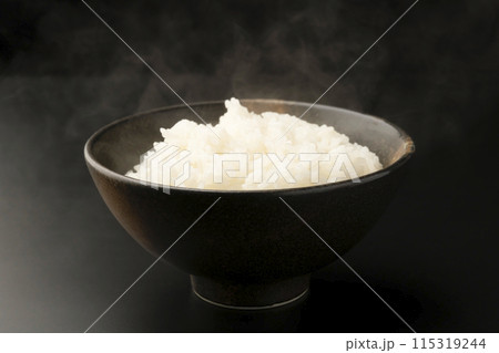 ご飯 黒背景 ゆげの立ったご飯