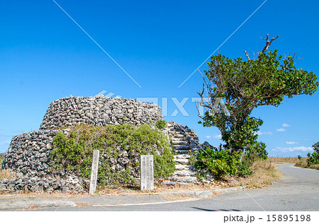 波照間島のサンゴの石垣で造られたコート盛の佇まい