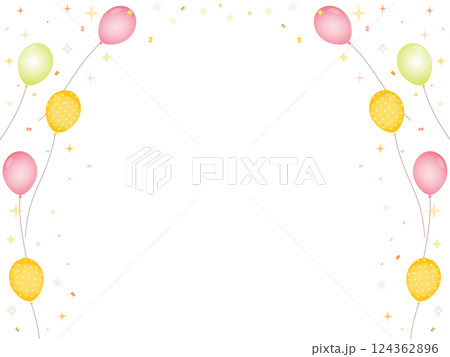 カラフルな風船と紙吹雪のフレーム背景イラスト