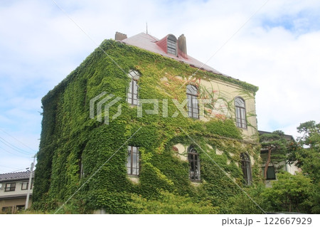 岩手県盛岡市の最古の洋館 景観重要建造物指定の明治の洋館 石井県令の私邸 ツタに覆われた洋館の窓辺