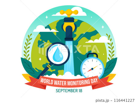 World Water Monitoring Day Vector Illustration on September 18 with Water Droplets and Earth in a Flat Style Cartoon Background