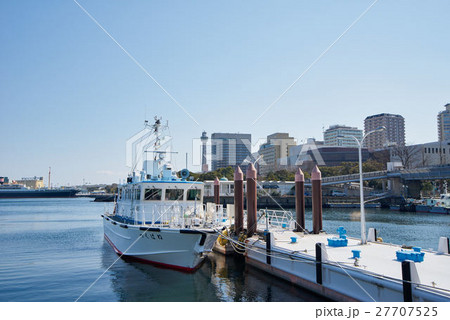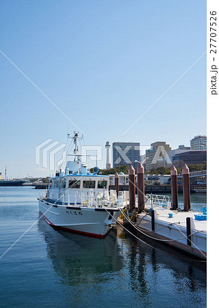 横浜税関の桟橋、監視艇つくばね(縦構図)