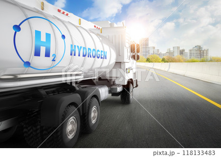 Hydrogen tank on semi trailer truck out for deliver