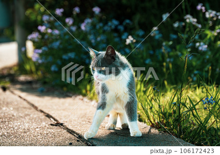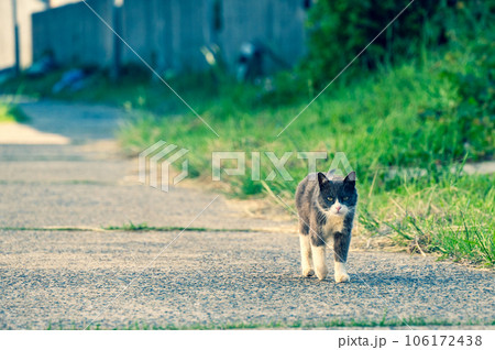 散歩道で出会う目つきの悪い野良猫、でも可愛い