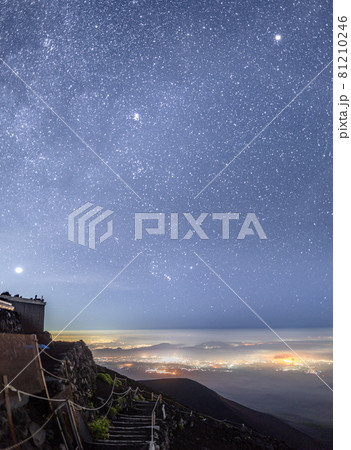 富士山登山!元祖七合目山口山荘から、満点の星空と夜景( 静岡県富士宮市)※作品コメント欄に撮影位置