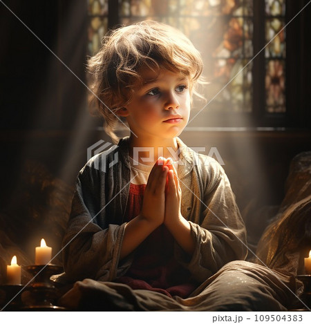 Little child hand praying,Hands folded in prayer concept. AI Generate