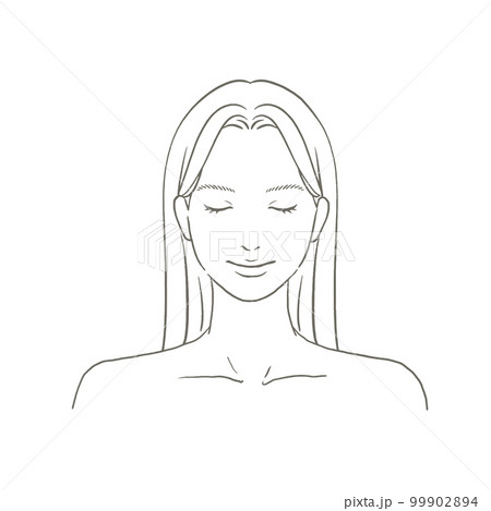 目を閉じる女性の正面顔 ロングヘア