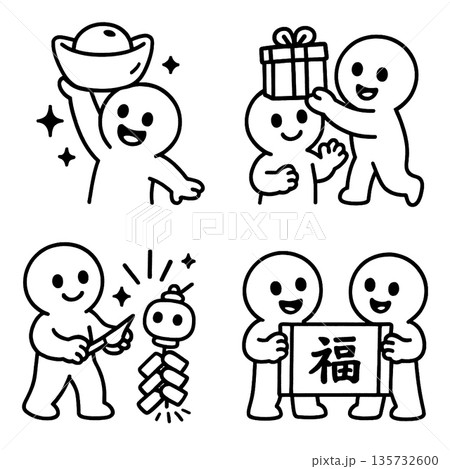 Lucky festive characters celebrating Chinese New Year with gifts, decorations and joy