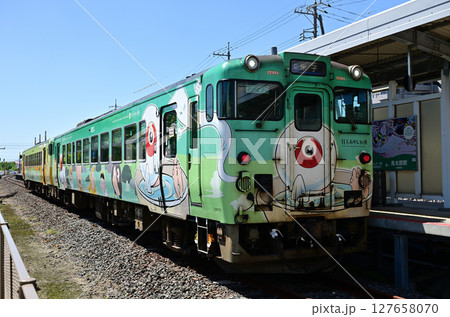 米子鬼太郎空港前の境線を快走する特別塗装の列車 … 鳥取県 境港市(晴れ)