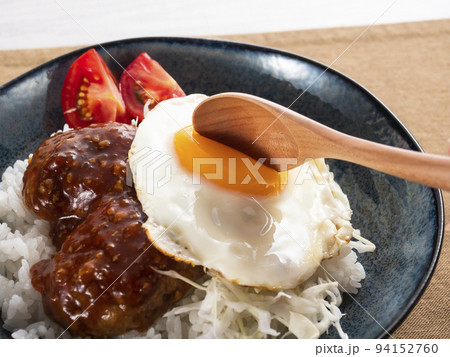 目玉焼き、ハンバーグ、サニーレタス、ロコモコ丼