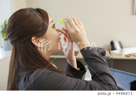 目薬をさす女性ビジネスマン