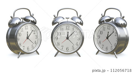 Many of flying alarm clocks on white background. 3d render of wake up time
