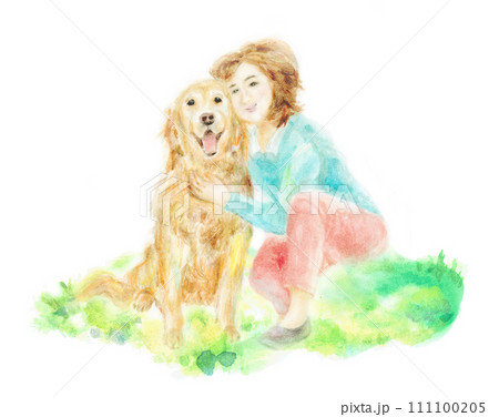 犬と女性 手描き