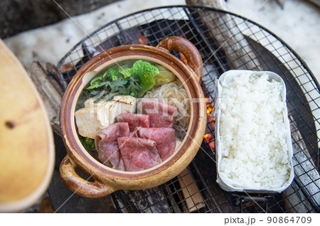 直火で作ったキャンプ飯 〜すき焼きとごはん〜