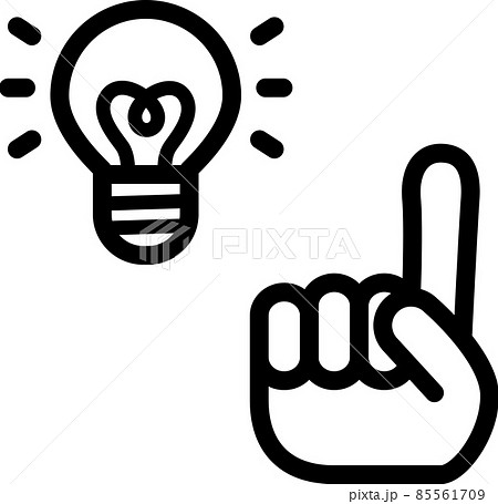 電球と人差し指を立てた手のアイコン、閃き