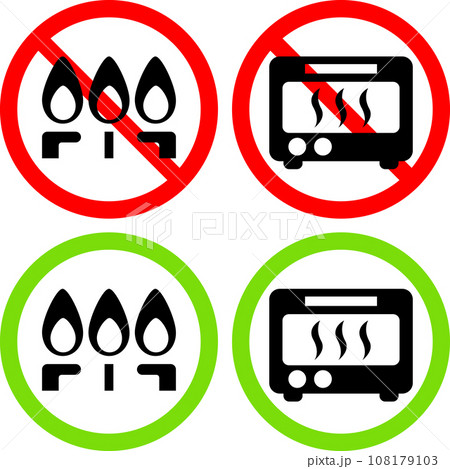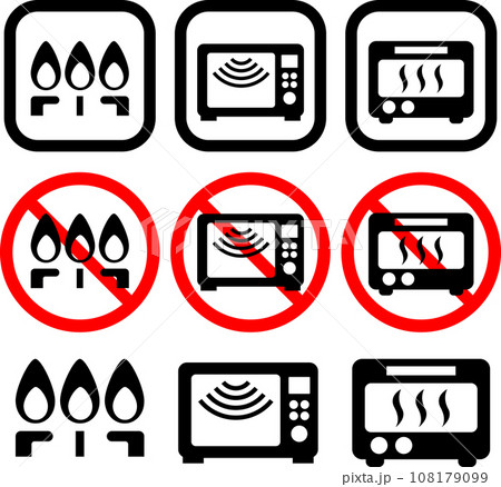 直火と電子レンジの禁止と対応のアイコンセット