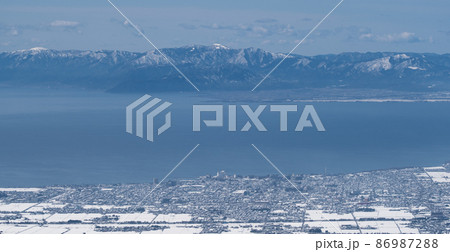 〔滋賀県米原市・2月〕伊吹山 上野登山口コース9合目辺りからの風景 市街地と琵琶湖