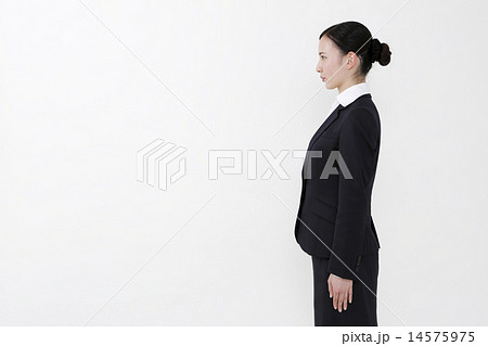 正面を向くスーツ姿の女性(全身)
