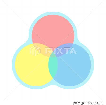 シンプルでスタイリッシュな重なりあった3つの円のベン図 -集合した3色の丸のイラスト素材