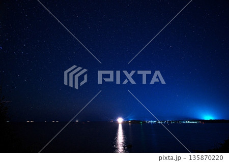 初冬の菅崎園地から安乗埼灯台の灯りを望む