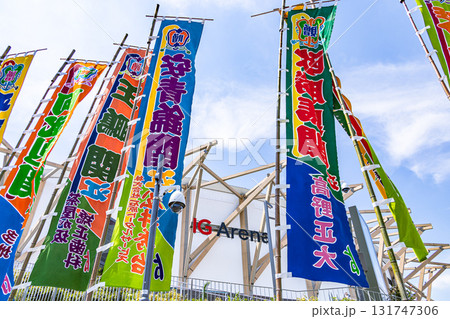 大相撲のぼり旗が立ち並ぶ IGアリーナ