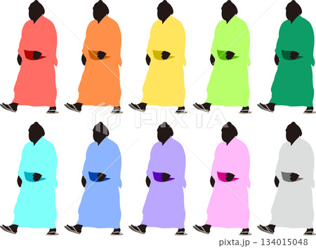 風呂敷を持ちながら着物姿で歩くお相撲さんの後ろ姿