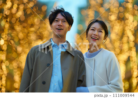 イルミネーションが輝く夜景を楽しむ男女