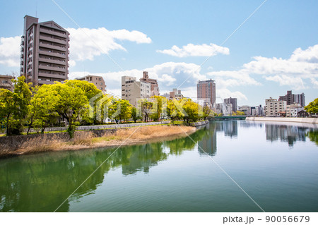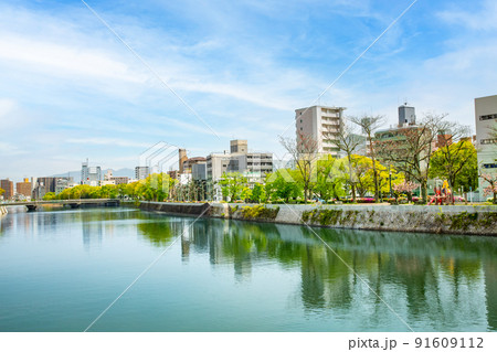 川の見える市街地風景です。中広大橋から川下方面を映しています。明るい市街地背景にどうぞ。広島市