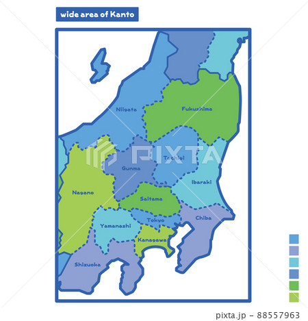 日本の地域図・日本地図 関東広域 雨の日カラーで色分けしてみた(英語版)